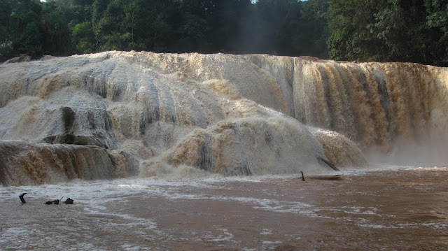 The river that flows from the waterfalls is the river that flowed in front of our house when I was a child down there. It used to get "milk chocolate" brown during rainy season. Your pictures bring back a lot of memories. Only once do I remember the howler monkeys. They were closer to Palenque than to where I lived.