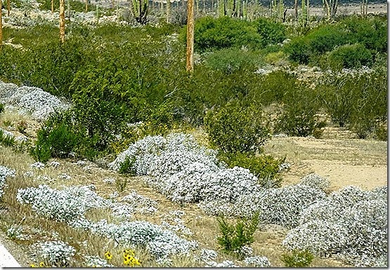 We also went through a section of road where we saw hundreds of six to eight inch diameter, ball- shaped masses on the branches of the cirio, datillo, and other plants. They call it ball moss, but it isn’t really moss; it is a densely-branched herb. The plant makes its own food through photosynthesis and secures moisture from the air. It does not penetrate into the tissue of its host plant, but clings by aerial roots, so it does not sap the nutrients of the host plant!